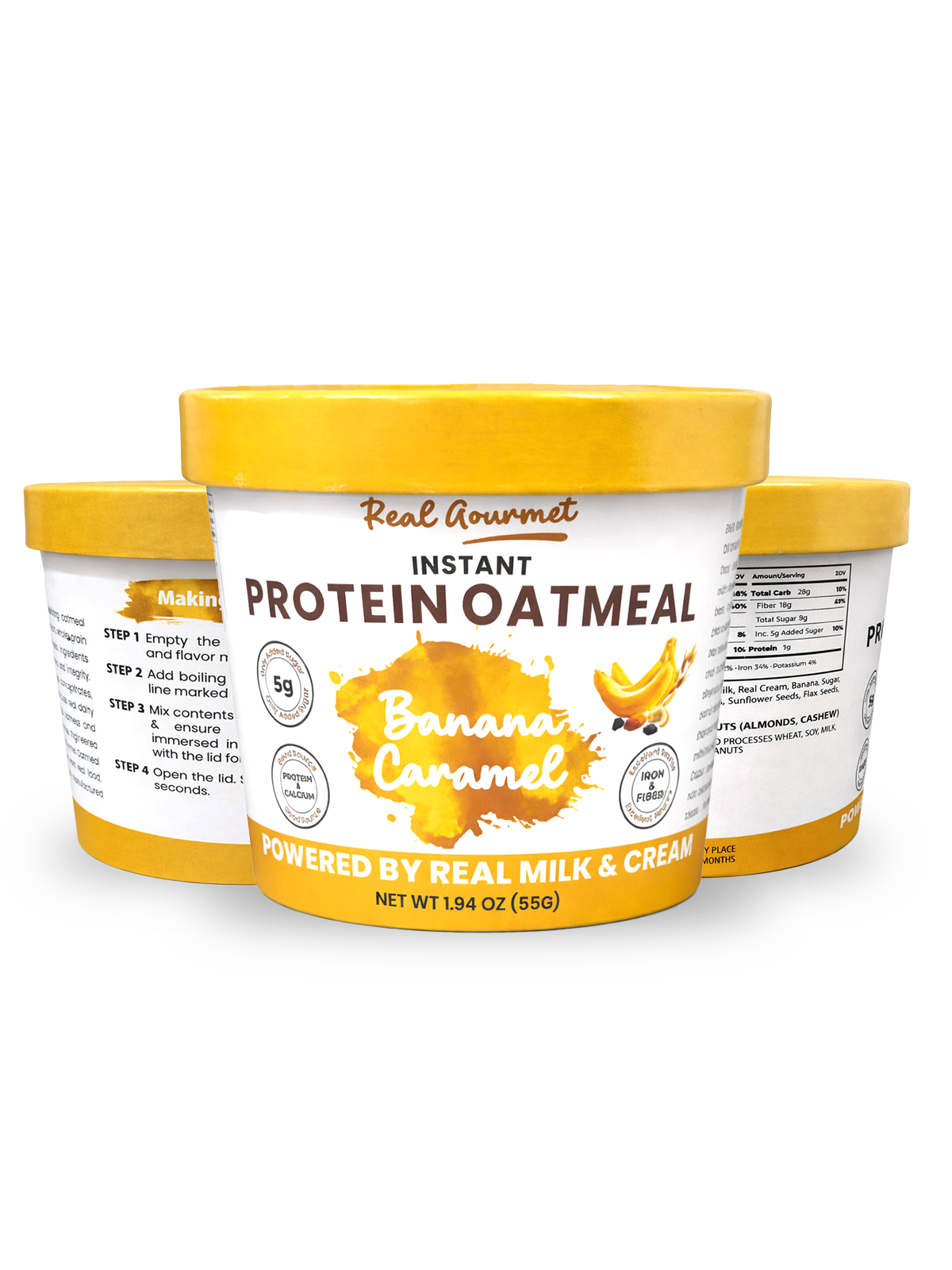 At REAL GOURMET, we believe breakfast should taste like comfort — not compromise. That’s why every cup of oatmeal is crafted traditionally: with real milk solids, never highly processed whey concentrates, isolates, or synthetic protein powders.